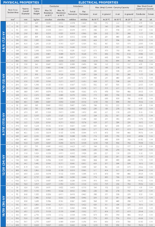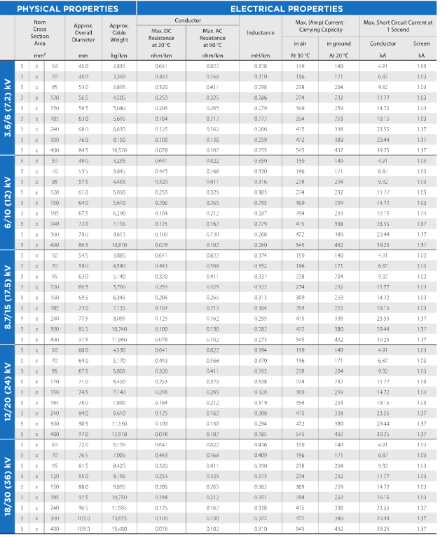 (Aluminium Conductor, XLPE Insulated, Copper Tape Screen, PVC Sheathed)