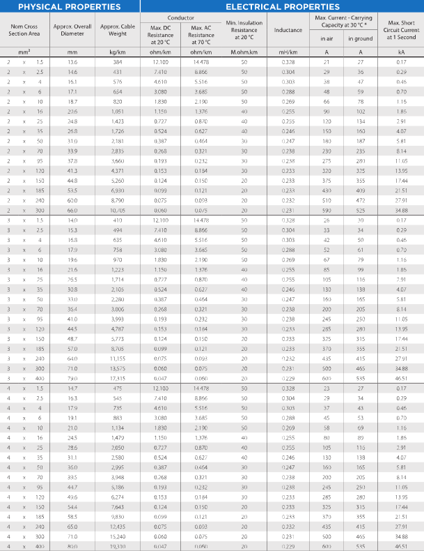 (Copper Conductor, XLPE Insulated, PVC Sheathed)
