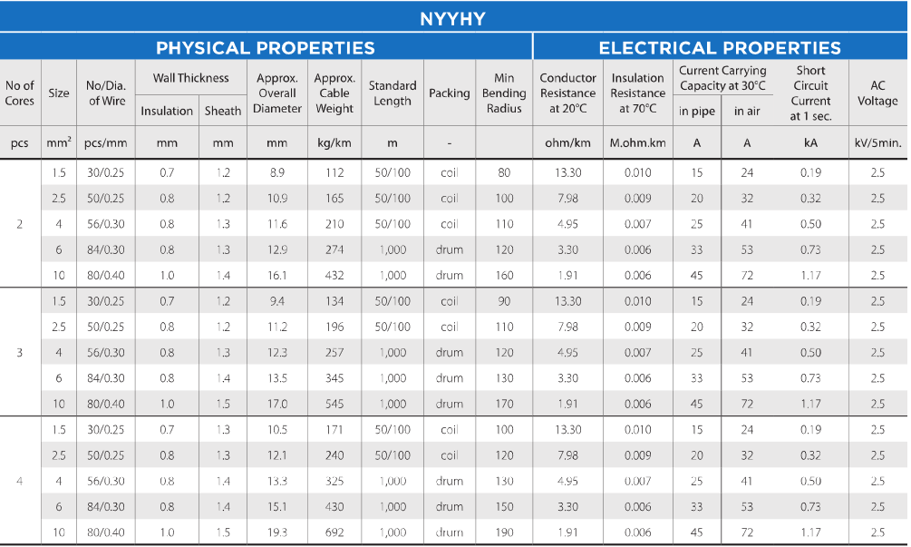 0.6/1(1.2)kV,NYYHY (Cu-f/pvc/pvc)(Flexible Copper Conductor, PVC Insulated, PVC Outer Sheated)