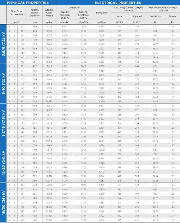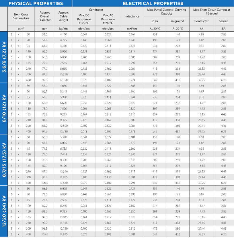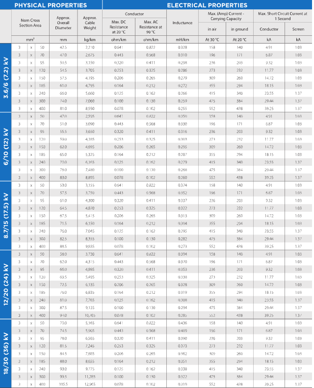 (Aluminium Conductor, XLPE Insulated, Copper Tape Screen, PVC Sheathed)