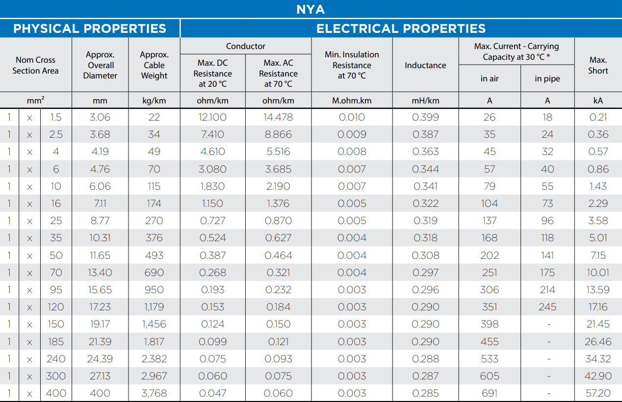 450/750 V, NYA (Cu/PVC)