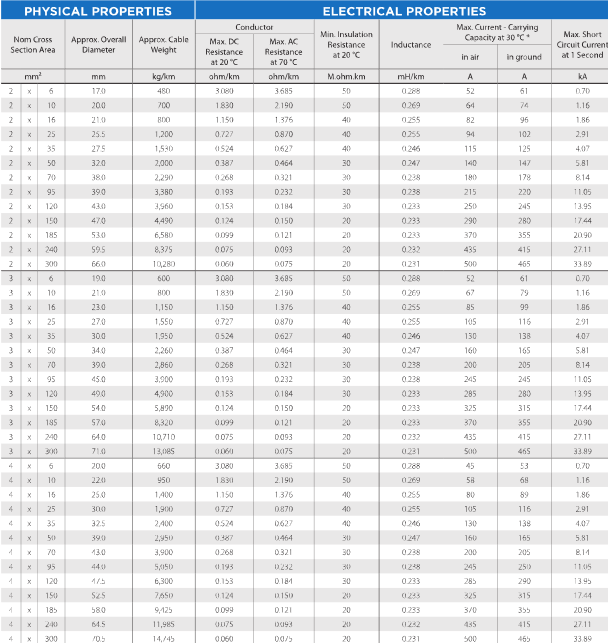 (Aluminium Conductor, XLPE Insulated, PVC Sheathed)